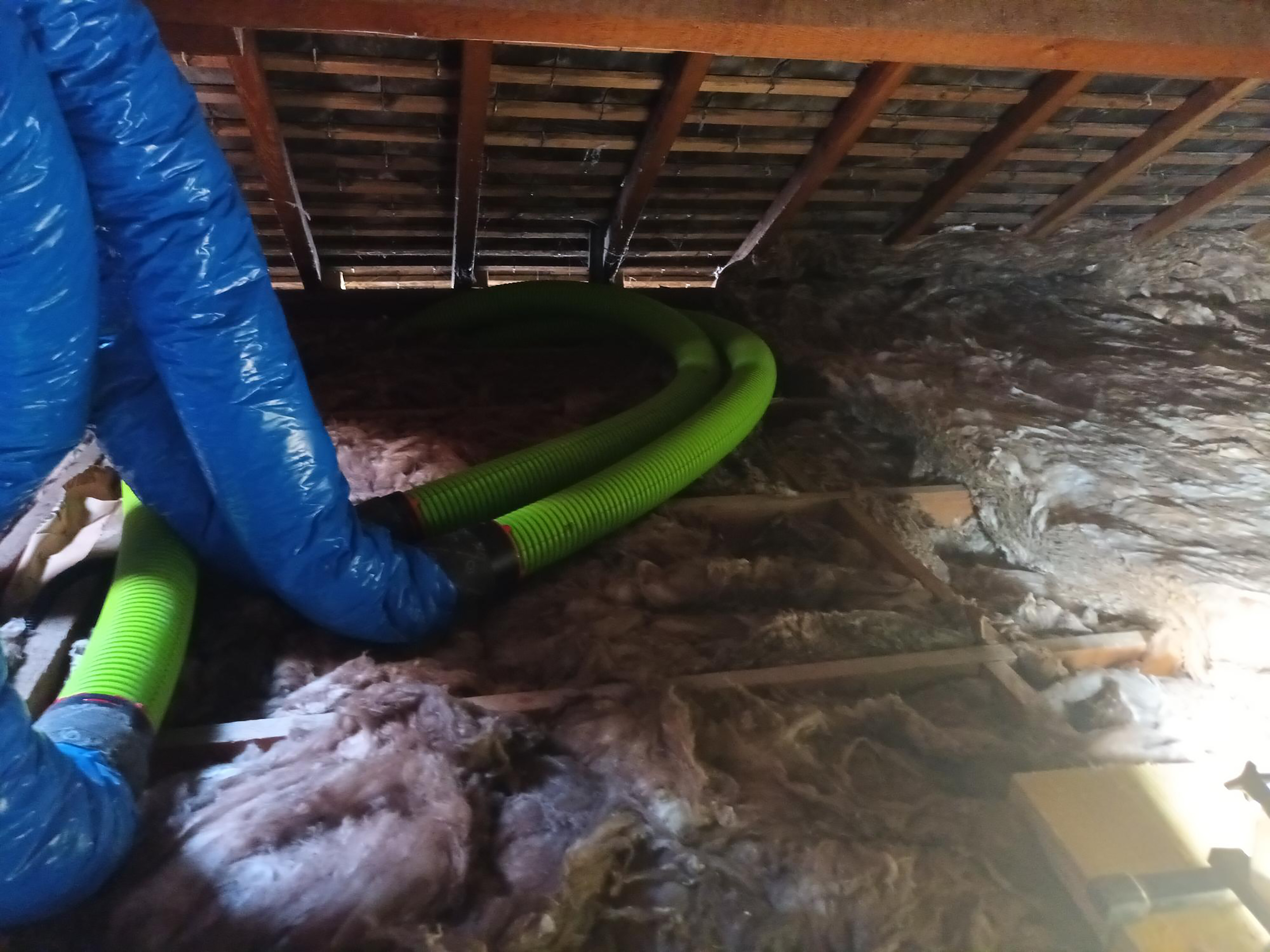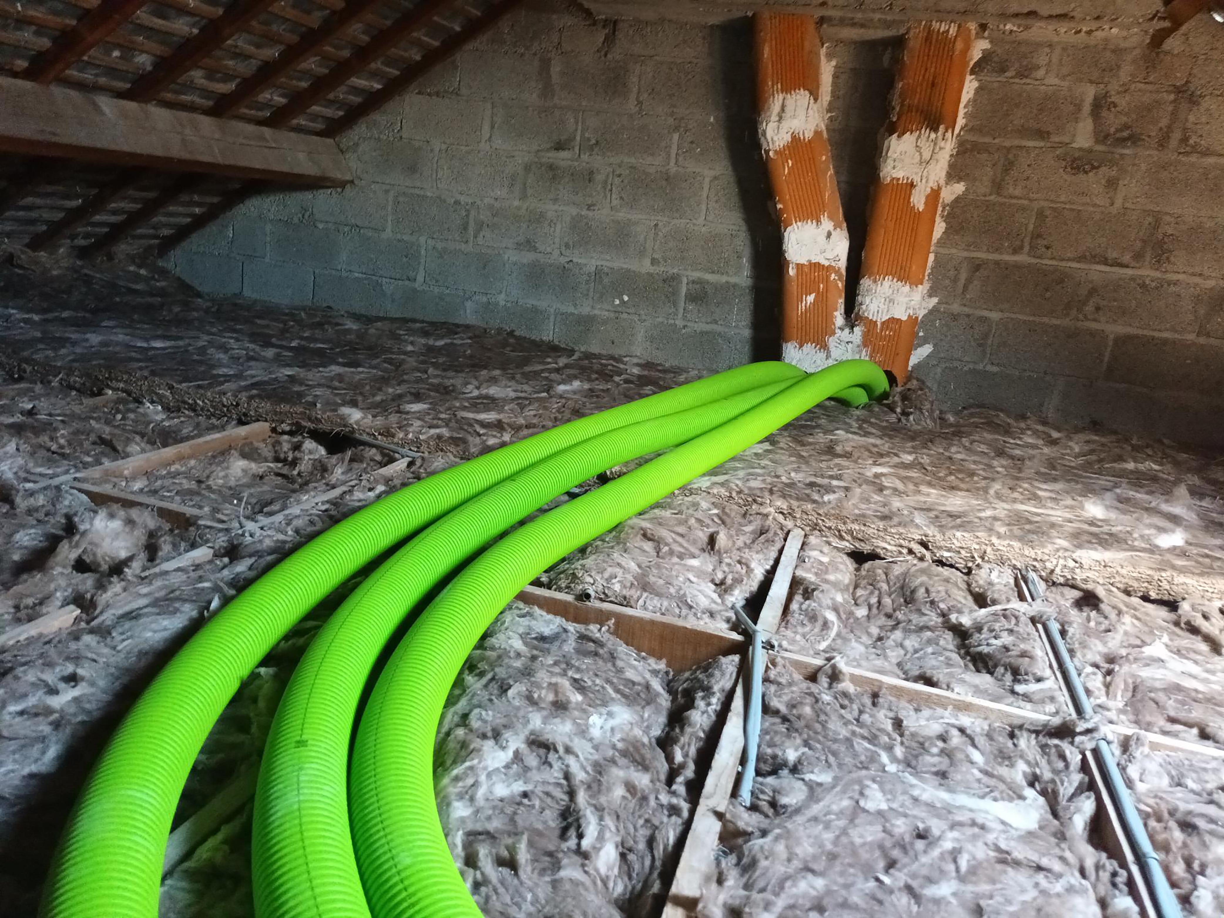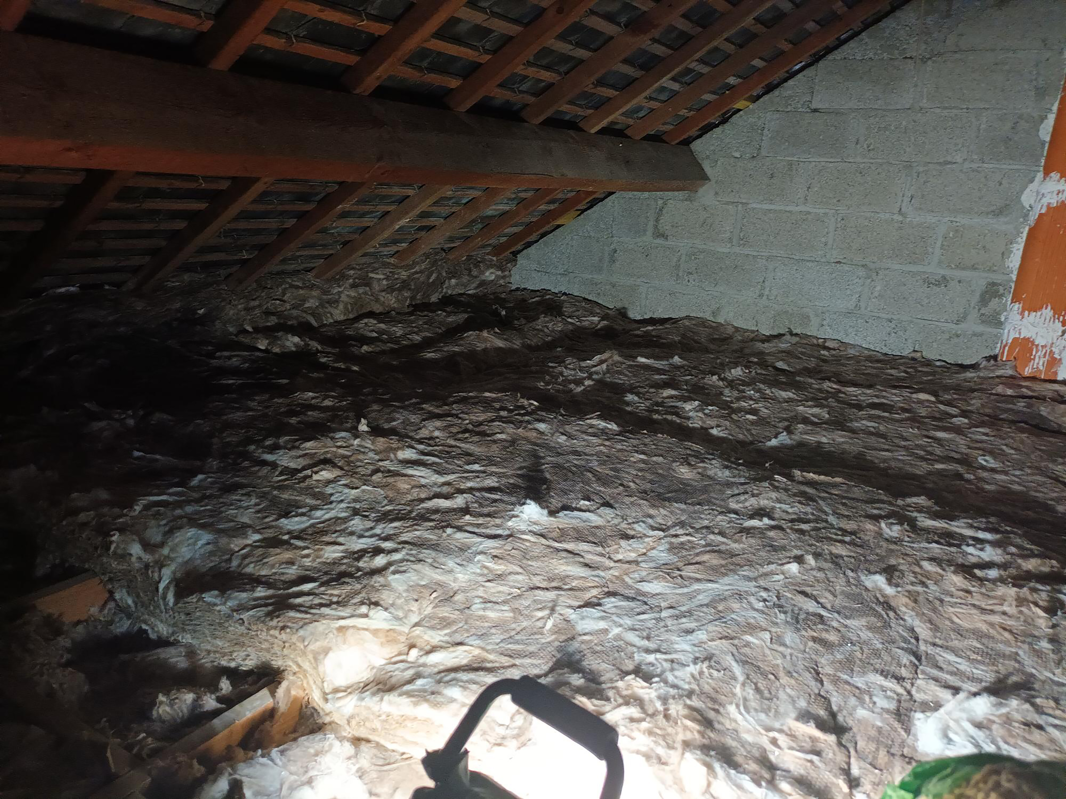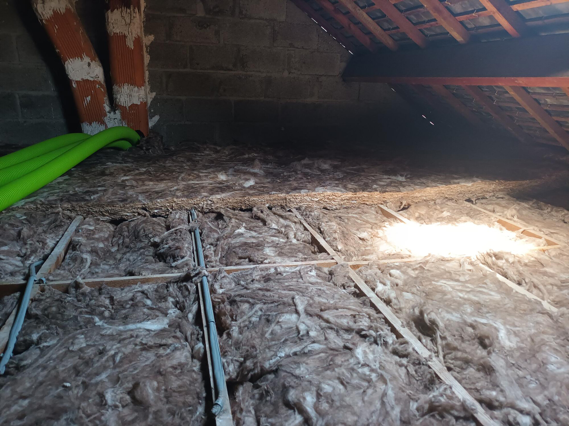 Isolation du solivage par laine de verre déroulée sur plafond droitLaine de verre IBR CONTACT (200 mm) et IBR NU (100 mm) de chez ISOVER